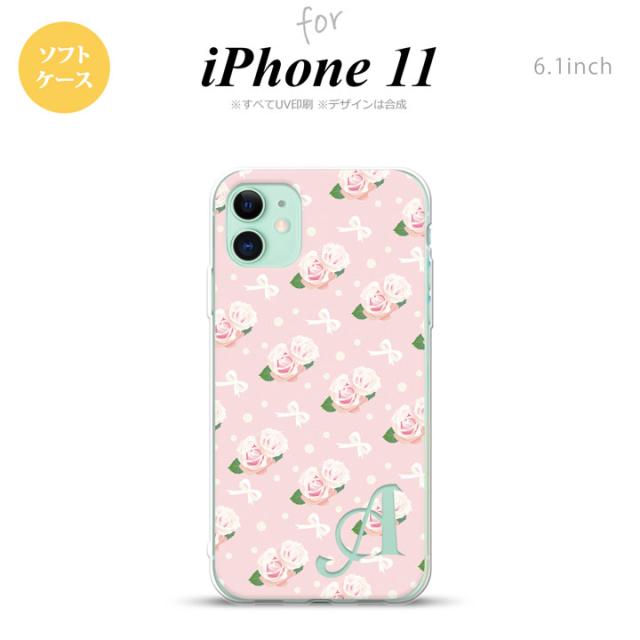 iPhone11 iPhone11 スマホケース ソフトケース 花柄 バラ リボン ピンク +アルファベット