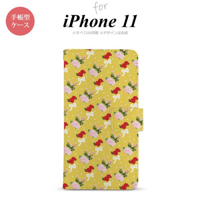 iPhone11 iPhone11 手帳型スマホケース カバー 花柄 バラ リボン 黄 nk-004s-i11-dr263
