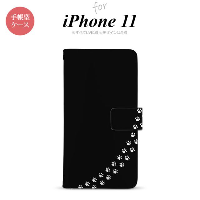 iPhone11 iPhone11 手帳型スマホケース カバー 猫 足跡 黒 クリア nk-004s-i11-dr421