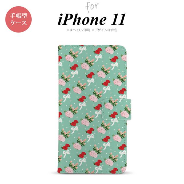 iPhone11 iPhone11 手帳型スマホケース カバー 花柄 バラ リボン ターコイズ nk-004s-i11-dr244