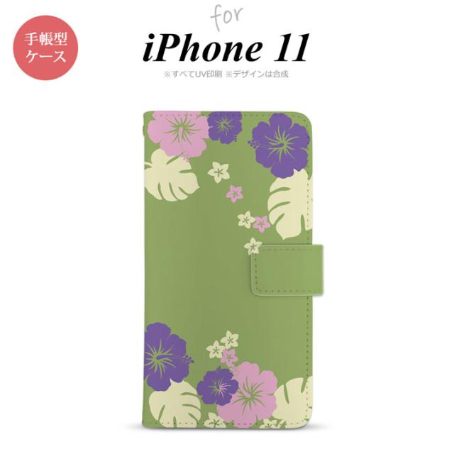 iPhone11 iPhone11 手帳型スマホケース カバー ハイビスカス 緑 nk-004s-i11-dr451
