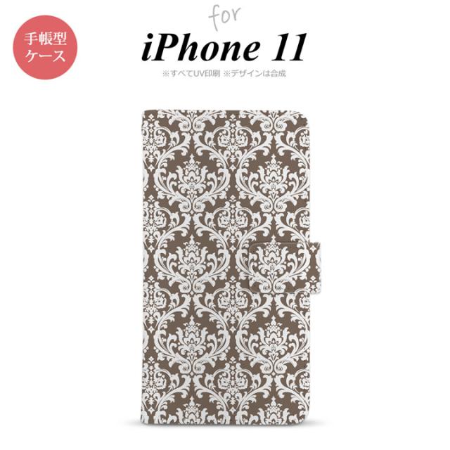 iPhone11 iPhone11 手帳型スマホケース カバー ダマスク 茶 白