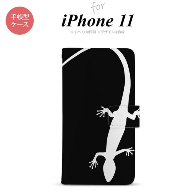 iPhone11 iPhone11 手帳型スマホケース カバー トカゲ 黒 白