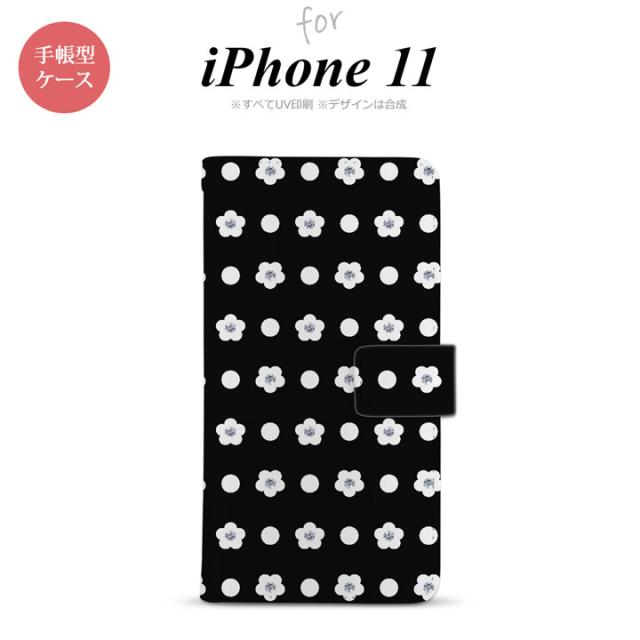 iPhone11 iPhone11 手帳型スマホケース カバー 花柄 ドット 黒 nk-004s-i11-dr341