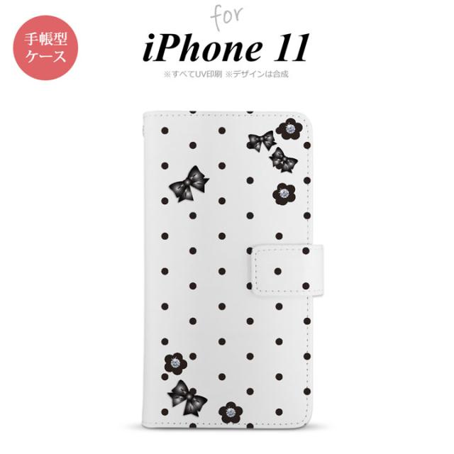 iPhone11 iPhone11 手帳型スマホケース カバー 花柄 ドット リボン 白 nk-004s-i11-dr353