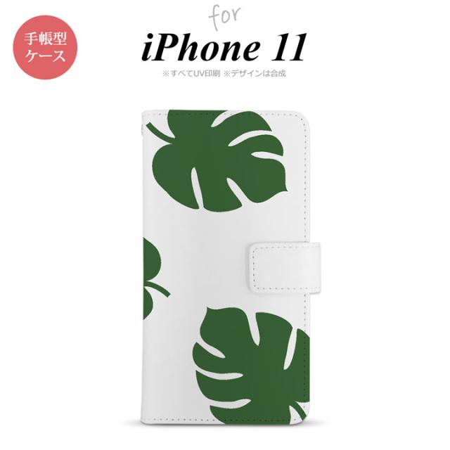 iPhone11 iPhone11 手帳型スマホケース カバー モンステラ 白 緑 nk-004s-i11-dr453