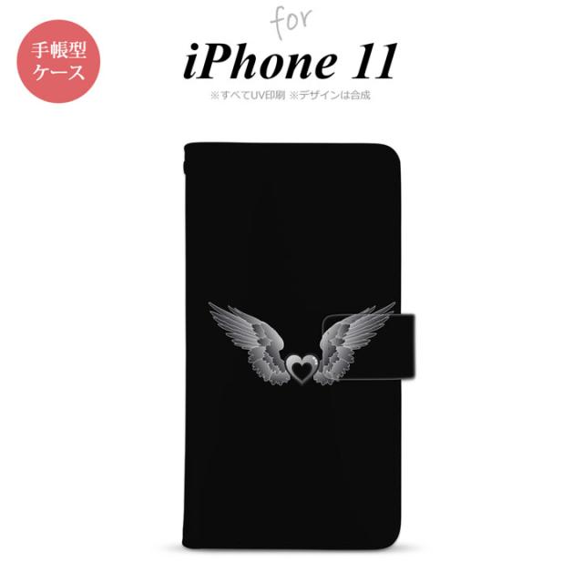 iPhone11 iPhone11 手帳型スマホケース カバー 黒翼 ハート 黒 グレー nk-004s-i11-dr468