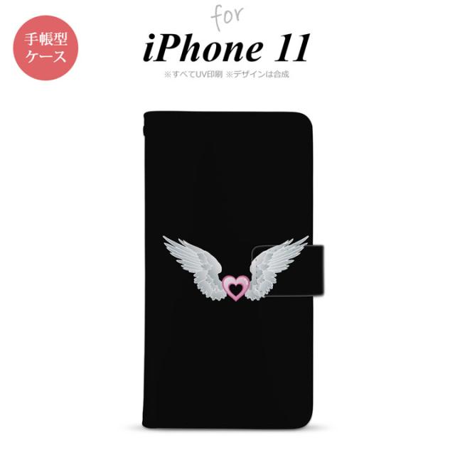 iPhone11 iPhone11 手帳型スマホケース カバー 白翼 ハート 黒 ピンク nk-004s-i11-dr473