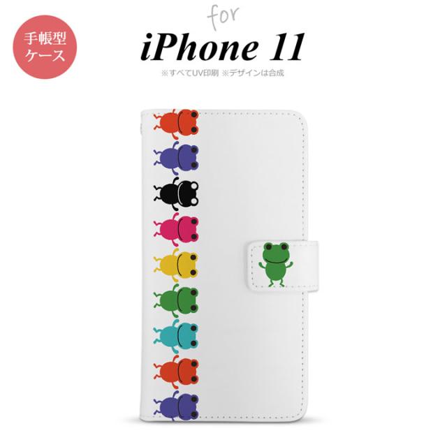 iPhone11 iPhone11 手帳型スマホケース カバー カエル かえる 帯 白