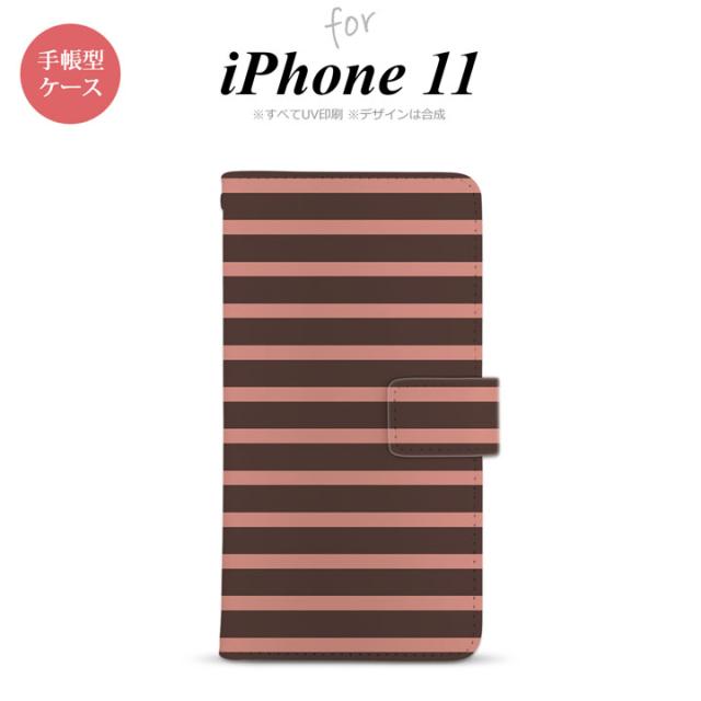 iPhone11 iPhone11 手帳型スマホケース カバー ボーダー 茶 ピンク nk-004s-i11-dr707