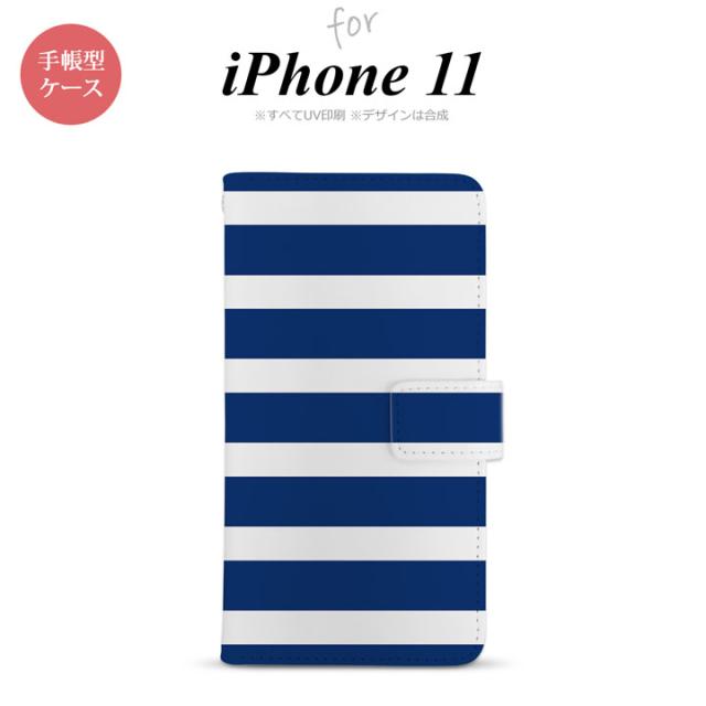 iPhone11 iPhone11 手帳型スマホケース カバー ボーダー 大 青 白 nk-004s-i11-dr796