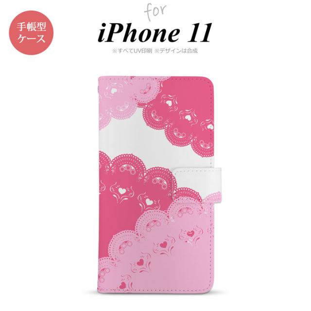 iPhone11 iPhone11 手帳型スマホケース カバー レース ピンク