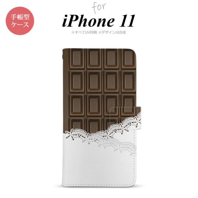 iPhone11 iPhone11 手帳型スマホケース カバー チョコ ビター レース 茶
