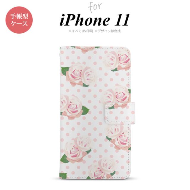 iPhone11 iPhone11 手帳型スマホケース カバー バラ ドット クリア