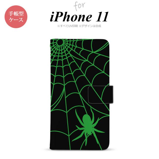 iPhone11 iPhone11 手帳型スマホケース カバー 蜘蛛 巣 緑 nk-004s-i11-dr942