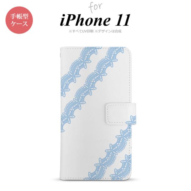 iPhone11 iPhone11 手帳型スマホケース カバー レース 水色 nk-004s-i11-dr1097