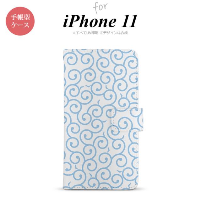iPhone11 iPhone11 手帳型スマホケース カバー 唐草 クリア 水色 nk-004s-i11-dr1127