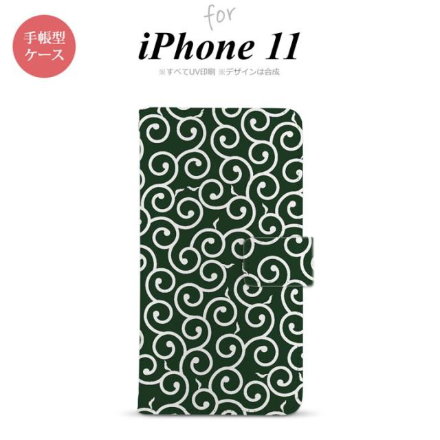 iPhone11 iPhone11 手帳型スマホケース カバー 唐草 緑 白 nk-004s-i11-dr1134