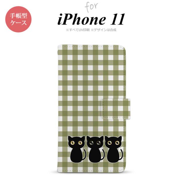iPhone11 iPhone11 手帳型スマホケース カバー 猫 イラスト 緑