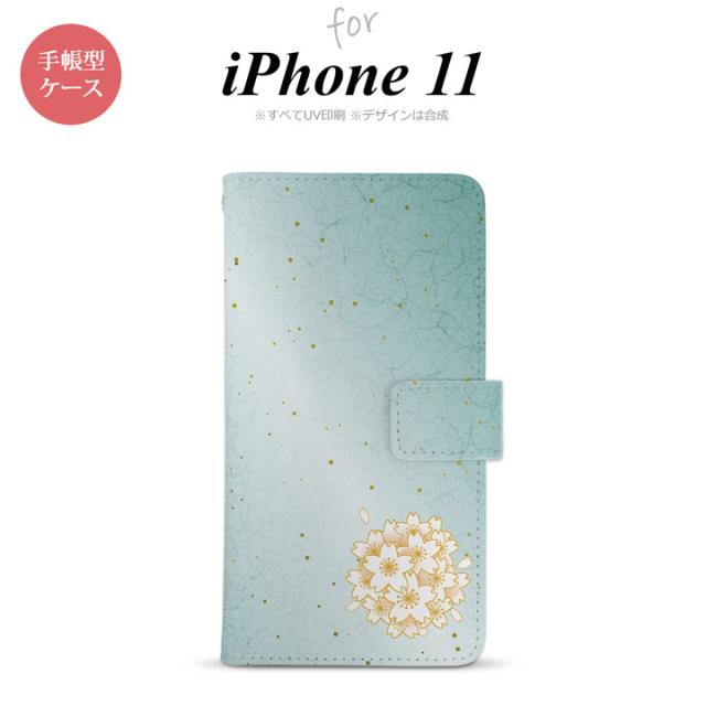 iPhone11 iPhone11 手帳型スマホケース カバー 和柄 サクラ 緑 nk-004s-i11-dr1276