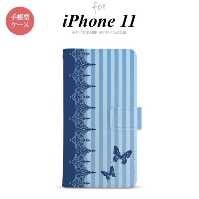 iPhone11 iPhone11 手帳型スマホケース カバー バタフライ 蝶 レース 青 nk-004s-i11-dr1283