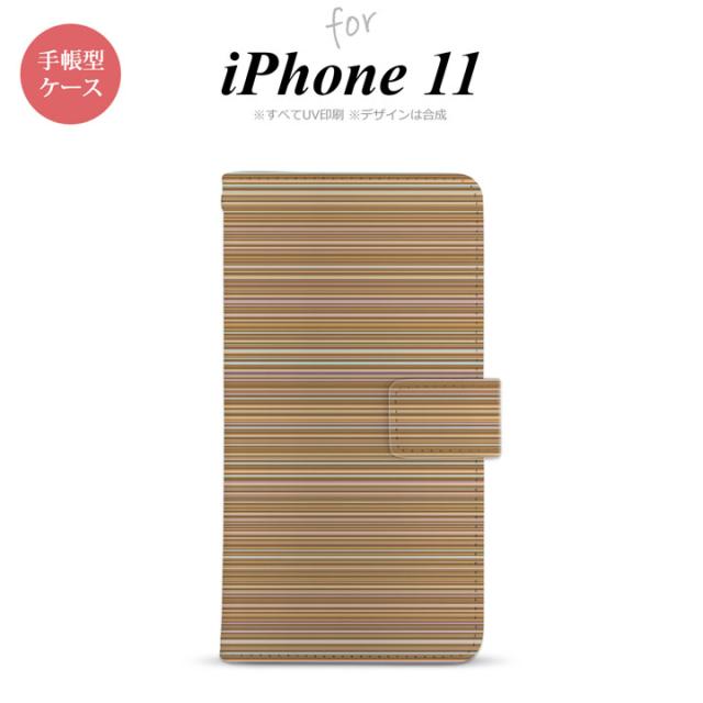 iPhone11 iPhone11 手帳型スマホケース カバー ボーダー 細 茶