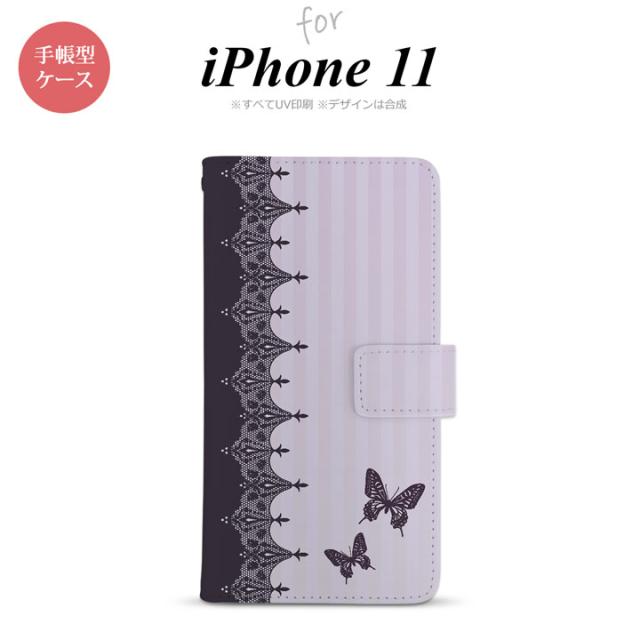 iPhone11 iPhone11 手帳型スマホケース カバー バタフライ 蝶 レース 紫 nk-004s-i11-dr1282