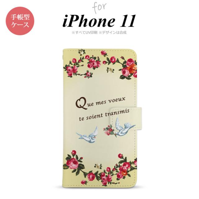 iPhone11 iPhone11 手帳型スマホケース カバー 鳥 バラ 黄 nk-004s-i11-dr1441