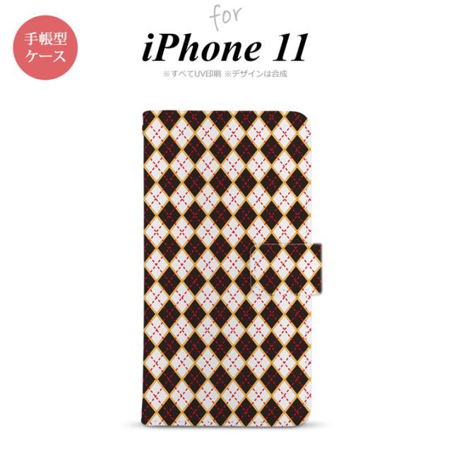 iPhone11 iPhone11 手帳型スマホケース カバー アーガイル 黒 赤 nk-004s-i11-dr1401