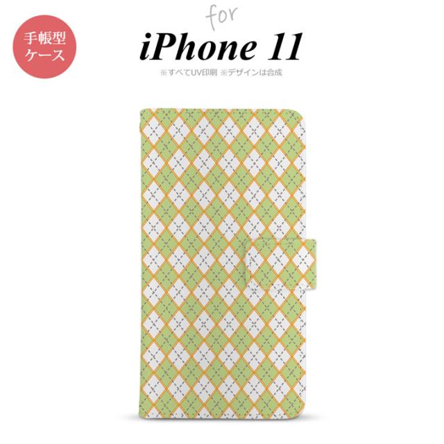 iPhone11 iPhone11 手帳型スマホケース カバー アーガイル 緑 グレー nk-004s-i11-dr1407