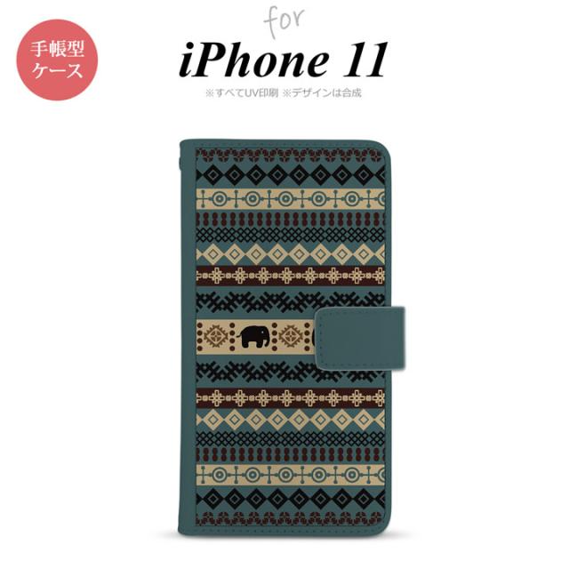iPhone11 iPhone11 手帳型スマホケース カバー エスニック ゾウ 青 nk-004s-i11-dr1573