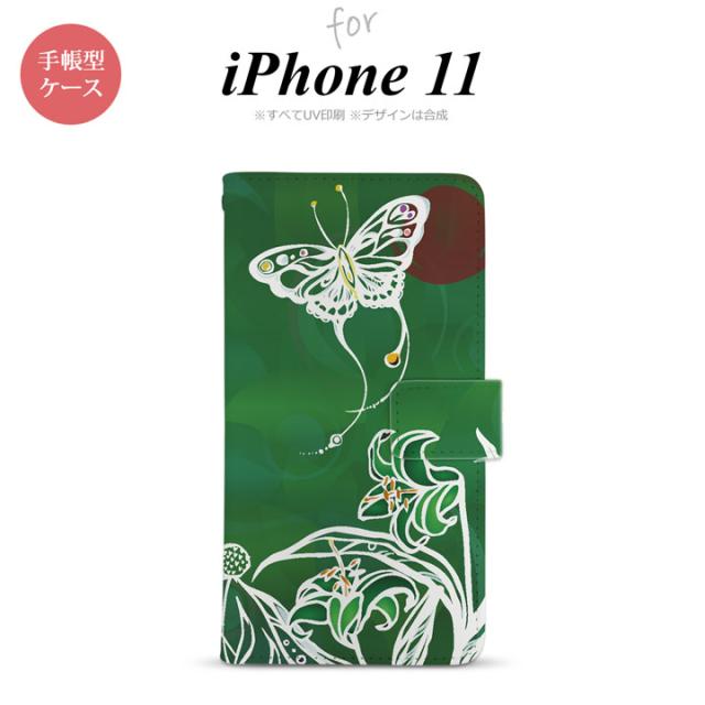 iPhone11 iPhone11 手帳型スマホケース カバー 蝶と花 緑 nk-004s-i11-dr1545