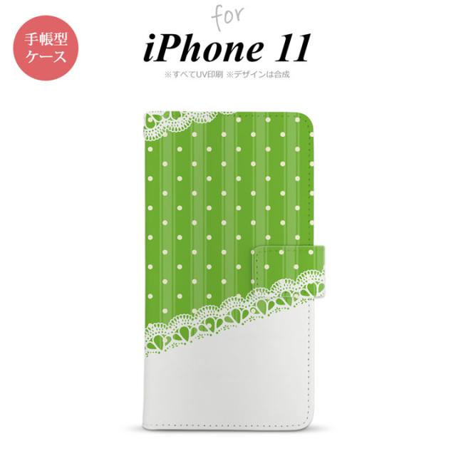 iPhone11 iPhone11 手帳型スマホケース カバー ドット レース 緑 nk-004s-i11-dr1615