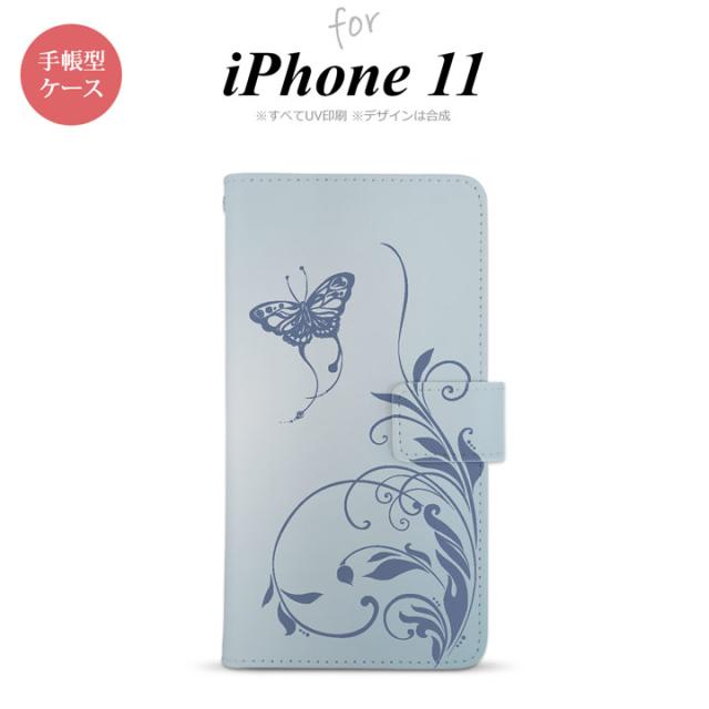 iPhone11 iPhone11 手帳型スマホケース カバー 蝶と草 青 nk-004s-i11-dr1633