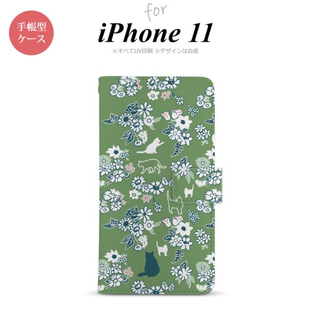 iPhone11 iPhone11 手帳型スマホケース カバー 猫 花 緑 nk-004s-i11-dr1724