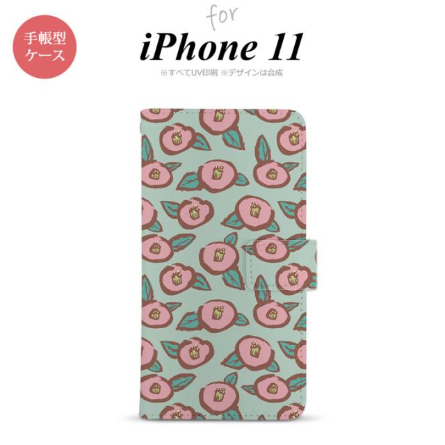 iPhone11 iPhone11 手帳型スマホケース カバー つばき 緑 nk-004s-i11-dr1702