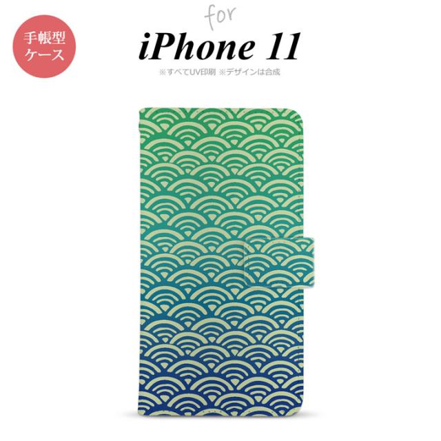 iPhone11 iPhone11 手帳型スマホケース カバー 青海波 青 緑 nk-004s-i11-dr1712