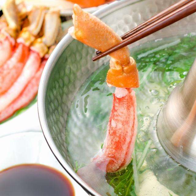 ズワイガニのしゃぶしゃぶは、生のカニ身の旨味を逃さない最適な食べ方。