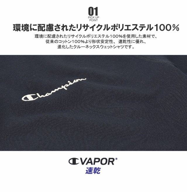 左胸にChampion(チャンピオン)ロゴを刺繍、袖口に刺繍ワッペン付き。