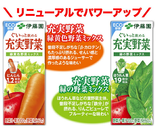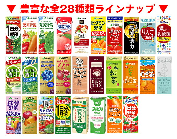 | 商品 | ビタミン野菜 200ml / 黒酢で活性 200ml / ビタミンフルーツ オレンジMix 200ml / ビタミンフルーツ りんごMix 200ml / 毎日1杯の青汁 まろやか豆乳ミックス 200ml / 緑茶ですっきり 毎日1杯の青汁(無糖) 200ml / 緑茶ですっきり 毎日1杯の青汁 さわやかフルーツミックス 200ml |