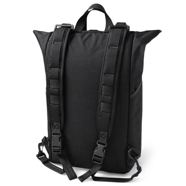 メインコンパートメントはスナップボタンでの開閉で、2つのハンドルを引っ張り広げるとワンアクションで簡単に開くことができます。