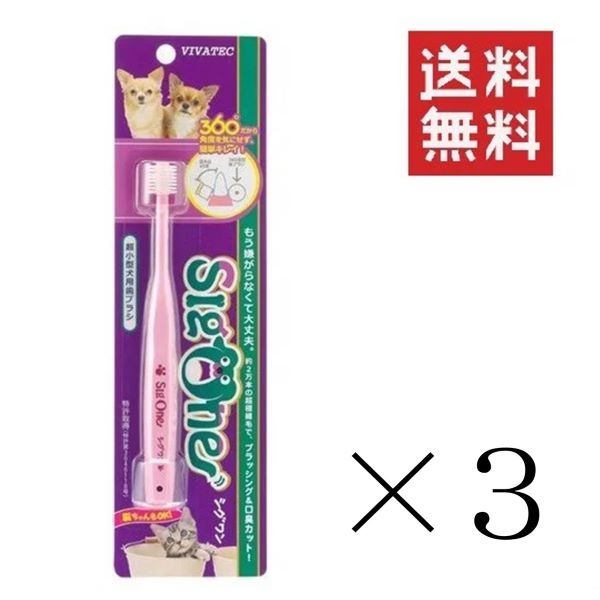 メール便/送料無料【イチオシ】ビバテック シグワン 超小型犬用歯ブラシ×3本セット まとめ買い 360°ヘッドブラシ 黄ばみ 汚れ 歯石取り 歯石 除去 歯磨き粉 歯周病