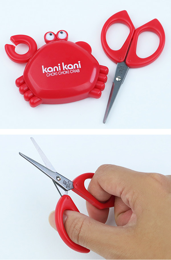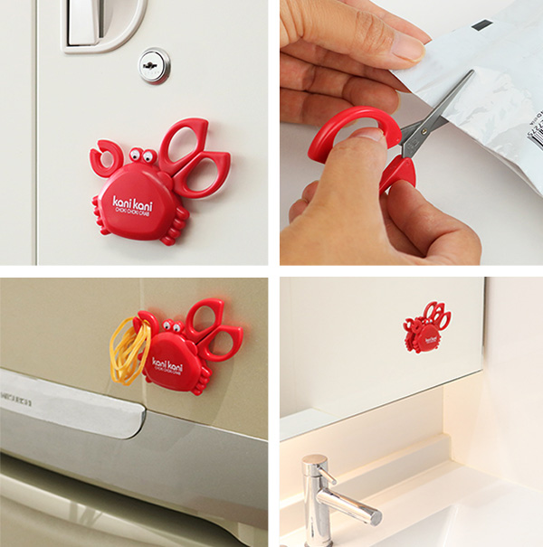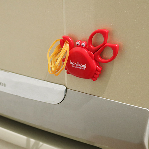 ハサミ マグネット付はさみ かにかに ( ミニハサミ キッチンバサミ コンパクトハサミ キッチンツール マグネット 手洗い場 冷蔵庫 デスク オフィス 会社 キッチン 洗面所 お風呂場 )
