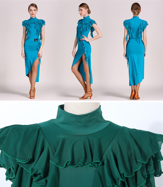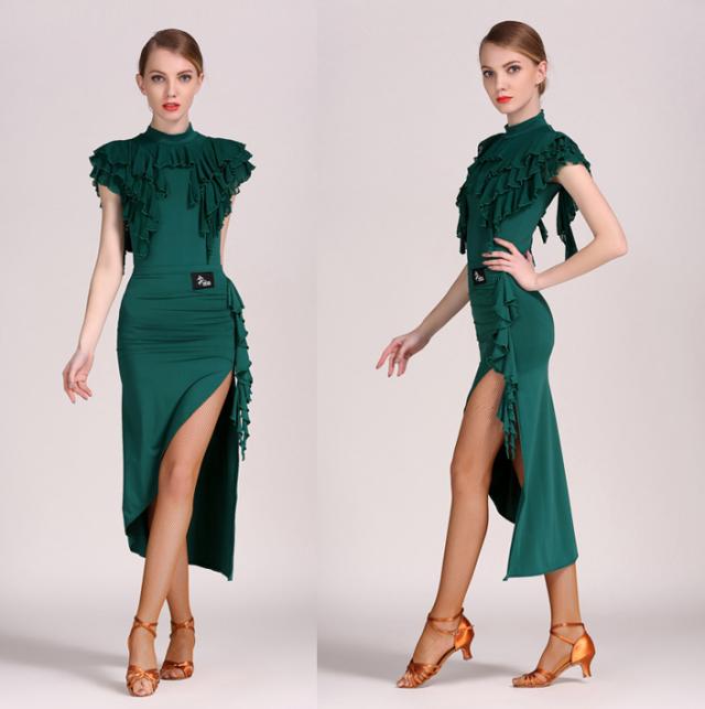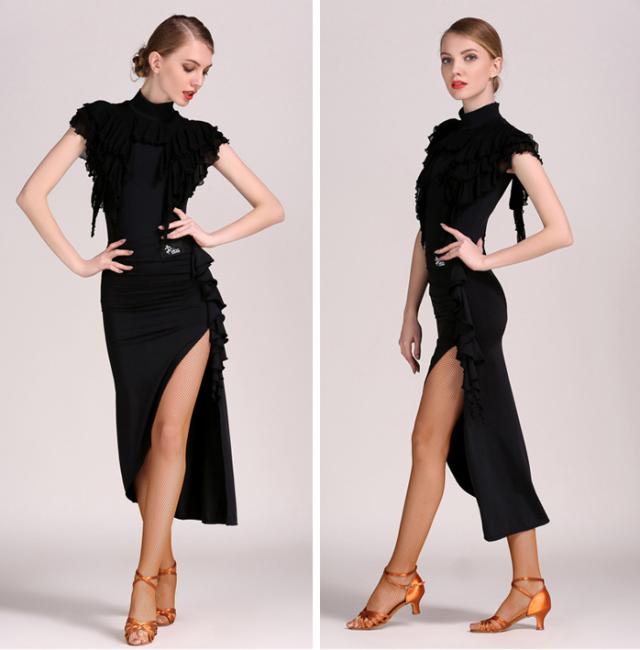 【送料無料】ダンス衣装 モダンダンス 大人用 ダンスウェア ラテンドレス パーティードレス フォーマル 競技用 練習服 上下セット レッスン着 ストレッチ