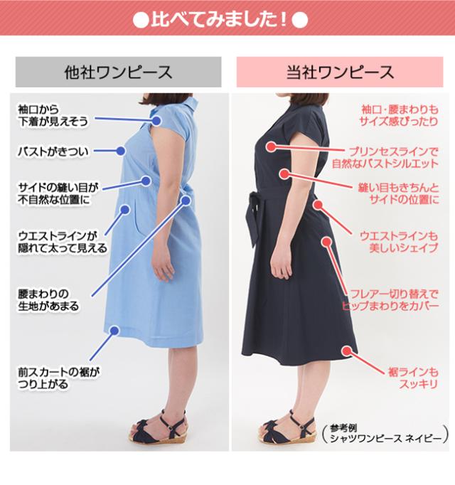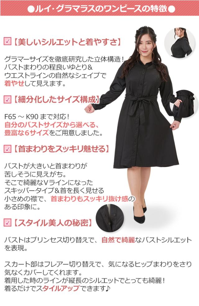 グラマーサイズのための立体構造シリーズの中でも特に人気の高いシャツワンピース