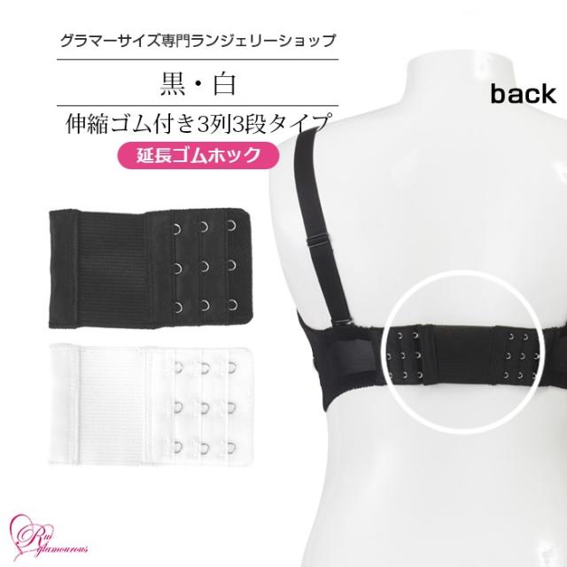 【商品特徴】大きいサイズ ブラジャー グラマーサイズ 延長ホック 伸縮ゴム 3列3段 黒 白