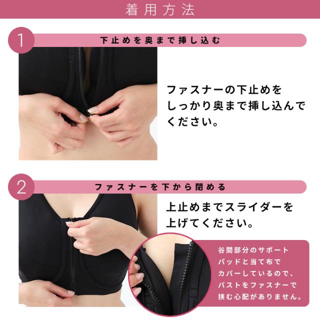 ※フロントファスナー商品のため、アンダーが調節できません。いつもご購入のアンダーサイズが少しきつめの方は、アンダーサイズを上げる事をオススメします。