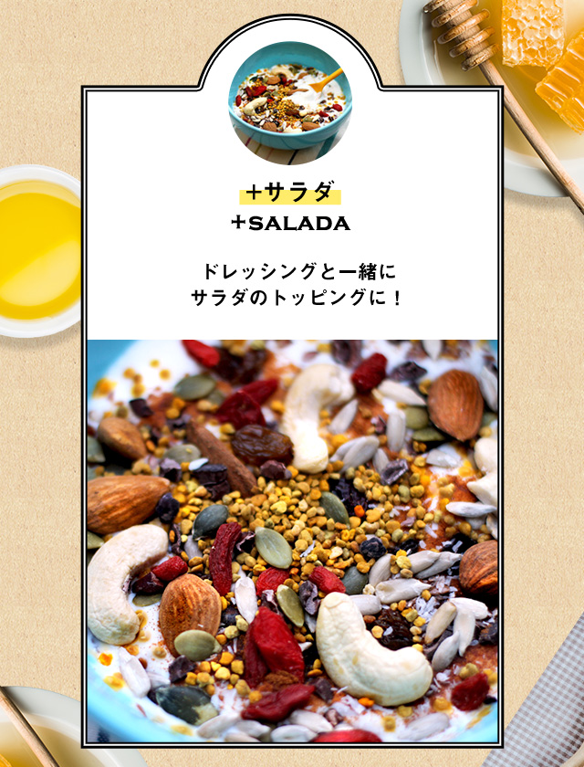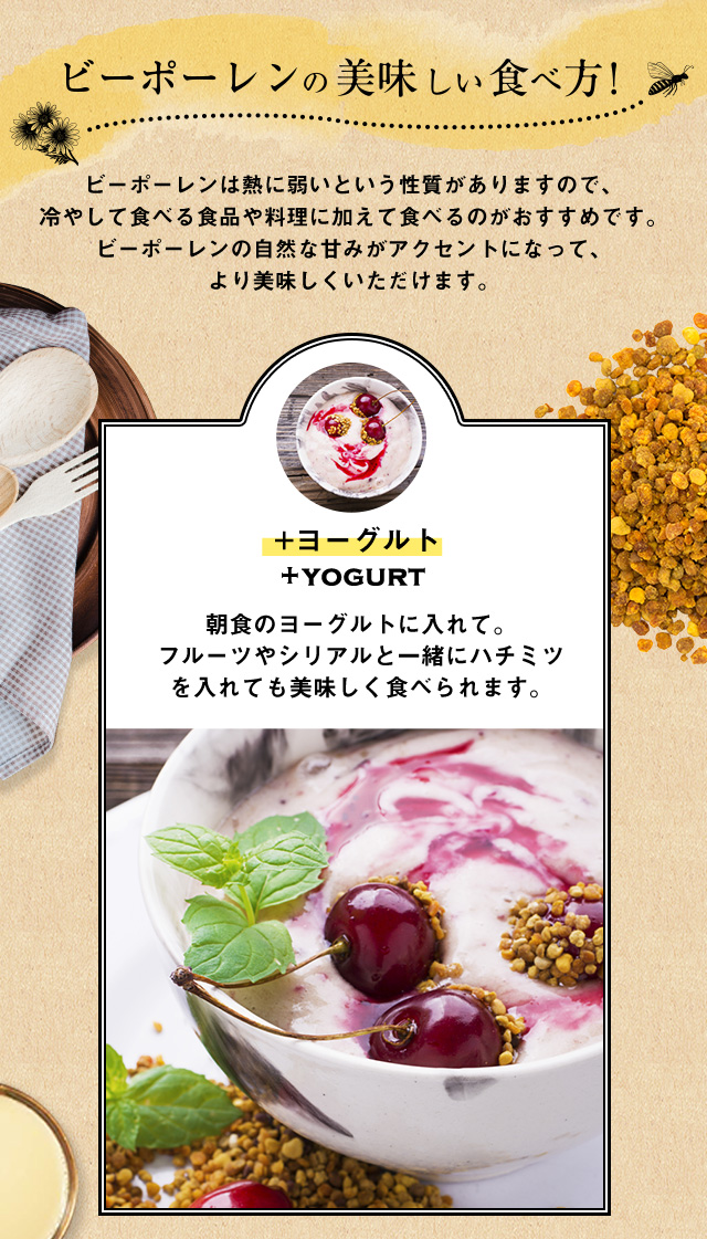 栄養成分が豊富なため、昔から天然の栄養食品として、美容や健康のための自然食品として人気です。ヨーグルトにかけるなどさまざまなお料理にお使いいただけます。