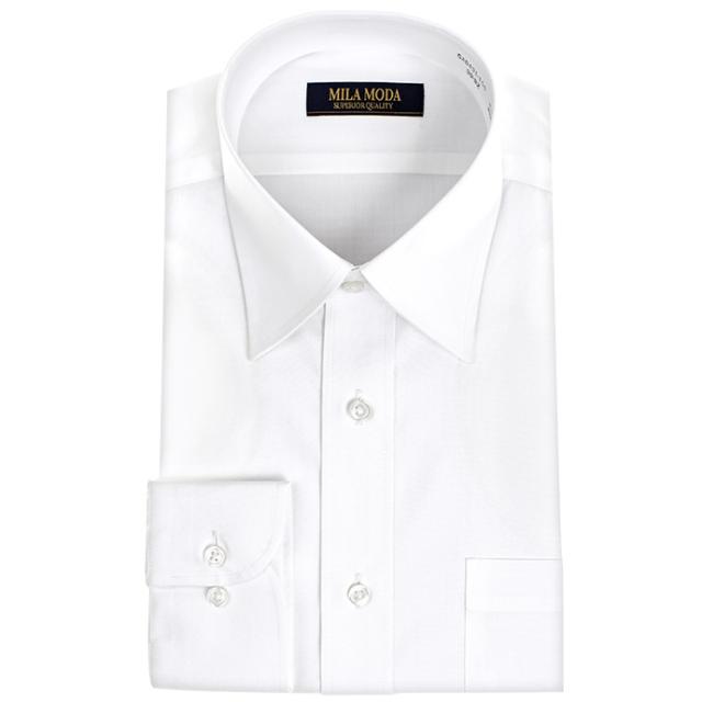 シンプルな衿型で冠婚葬祭にもオススメの白シャツです。