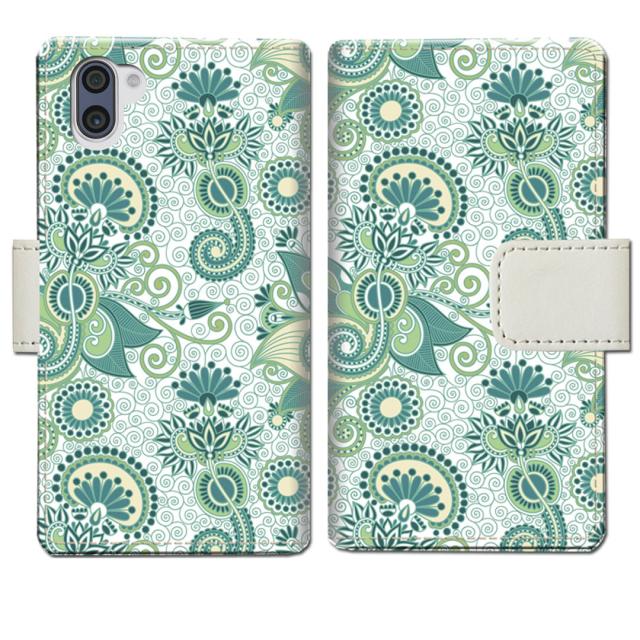 AQUOS R3 SHV44 SH-04L 808SH 共通 - グリーンペイズリーデザイン - 手帳型 スマホケース 手帳ケース 手帳カバー スマホカバー